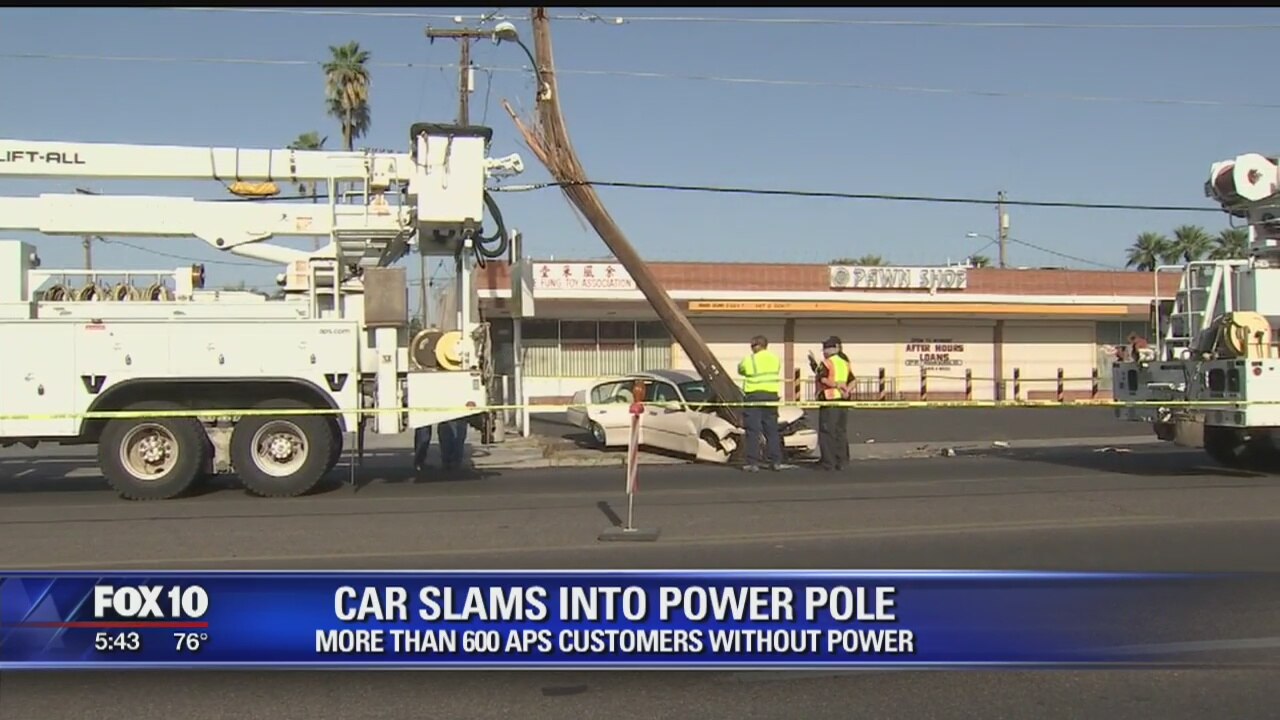 Hundreds of people were without power near downtown Phoenix on Tuesday morning after a car crashed into a power pole.