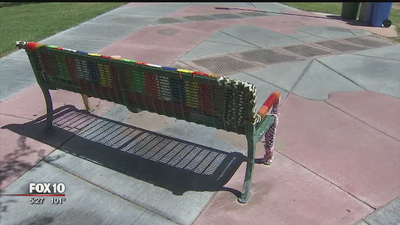It's a colorful sight popping up in several Phoenix neighborhoods, trees and some benches were covered in yarn. The pop-up artwork is called yarn bombing.