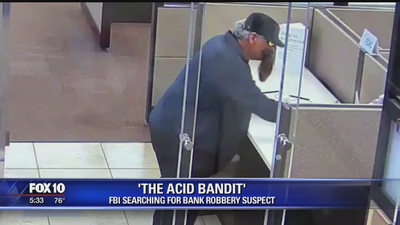 The FBI is searching for a man they call the 'Acid Bandit' who was caught on camera trying to rob a bank in Mesa.