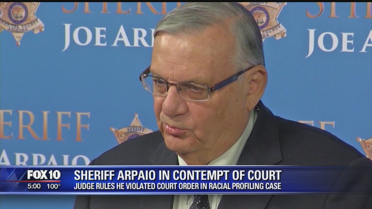 PHOENIX (AP) ? A judge found the longtime sheriff of metro Phoenix in contempt of court Friday for disobeying his orders in a racial profiling case, bringing the lawman who calls himself "America's Toughest Sheriff" a step closer to a possible criminal contempt case that could expose him to fines and even jail time.