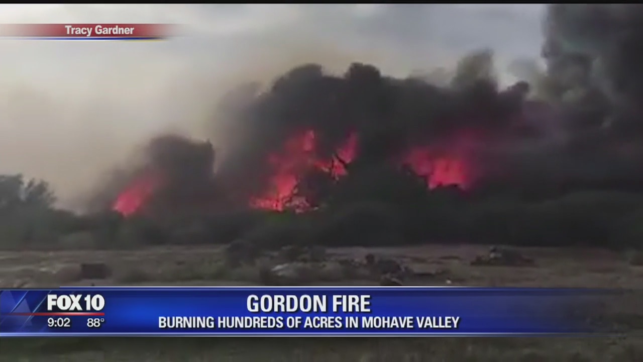 The Gordon Fire has burned almost 400 acres in Mohave County. It's burning near Bullhead City near the California state line. Crews say the fire started near 3 p.m. Friday, and it's moving through hundred of acres with zero containment.