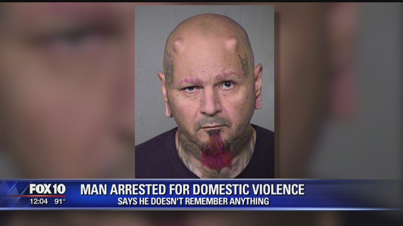 Police arrested a "horned" man after he allegedly attacked his wife with a knife during a domestic violence dispute.