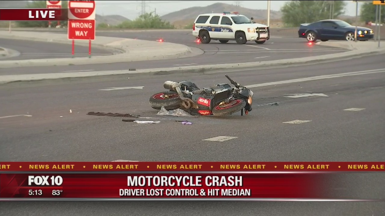 A motorcyclist is in critical condition after crashing into a median in north Phoenix.