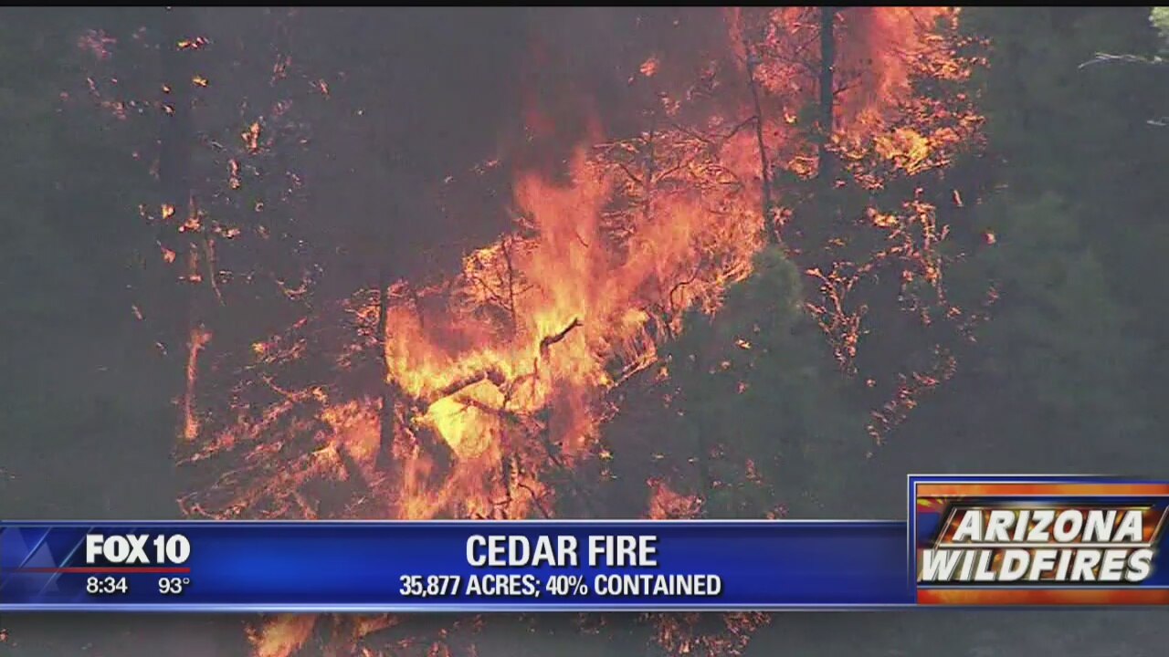 The Cedar Fire has grown to 35,877 acres and is now only 20 percent contained near Show Low.