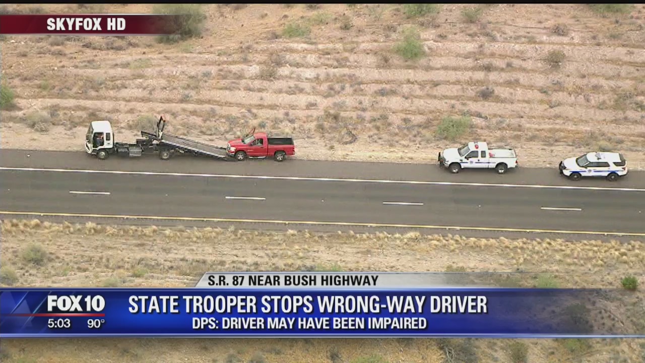 FOUNTAIN HILLS, Ariz. (AP) ? Arizona Department of Public Safety officials say a trooper purposefully crashed into a wrong-way driver on a highway outside of Phoenix.