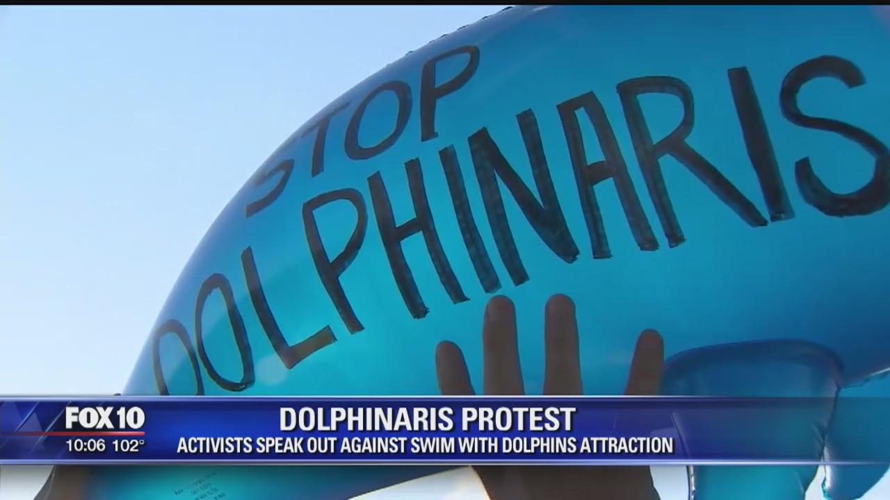 Activists speak out against swimming with dolphins attraction.
