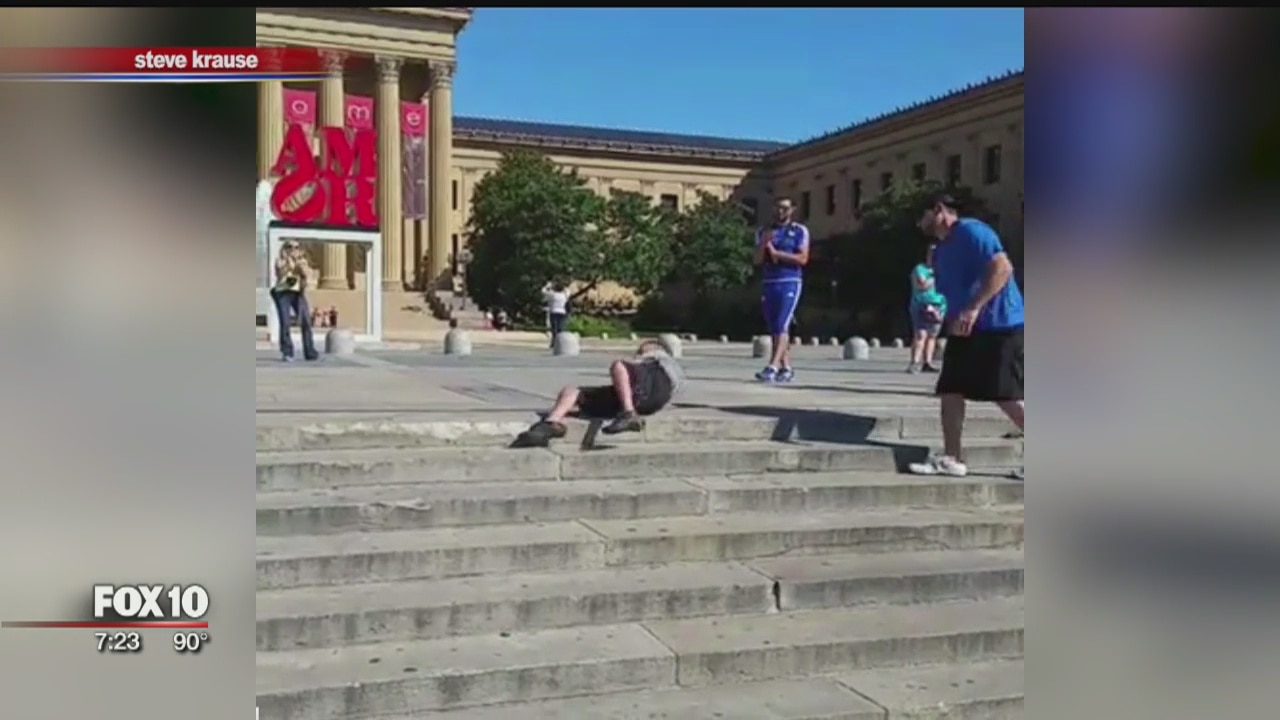 Valley man climbs "Rocky Steps" using only his back and neck