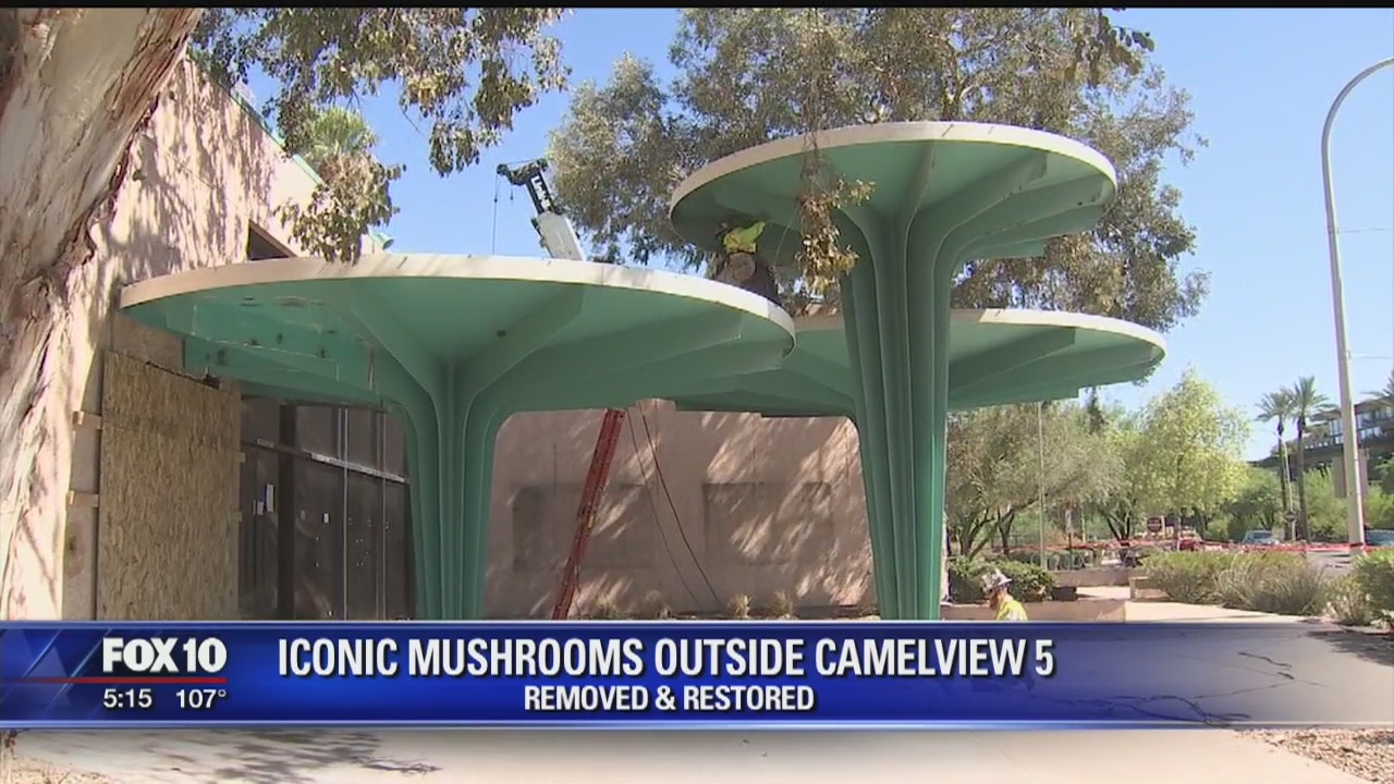 These mushrooms are unique and long-standing. They've marked the entrance to the old Harkins Camelview 5 Theatre for the past four decades.