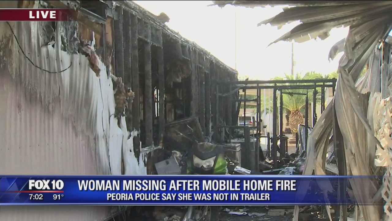 Police are investigating a missing woman who has not been seen since her mobile home caught fire Monday evening.