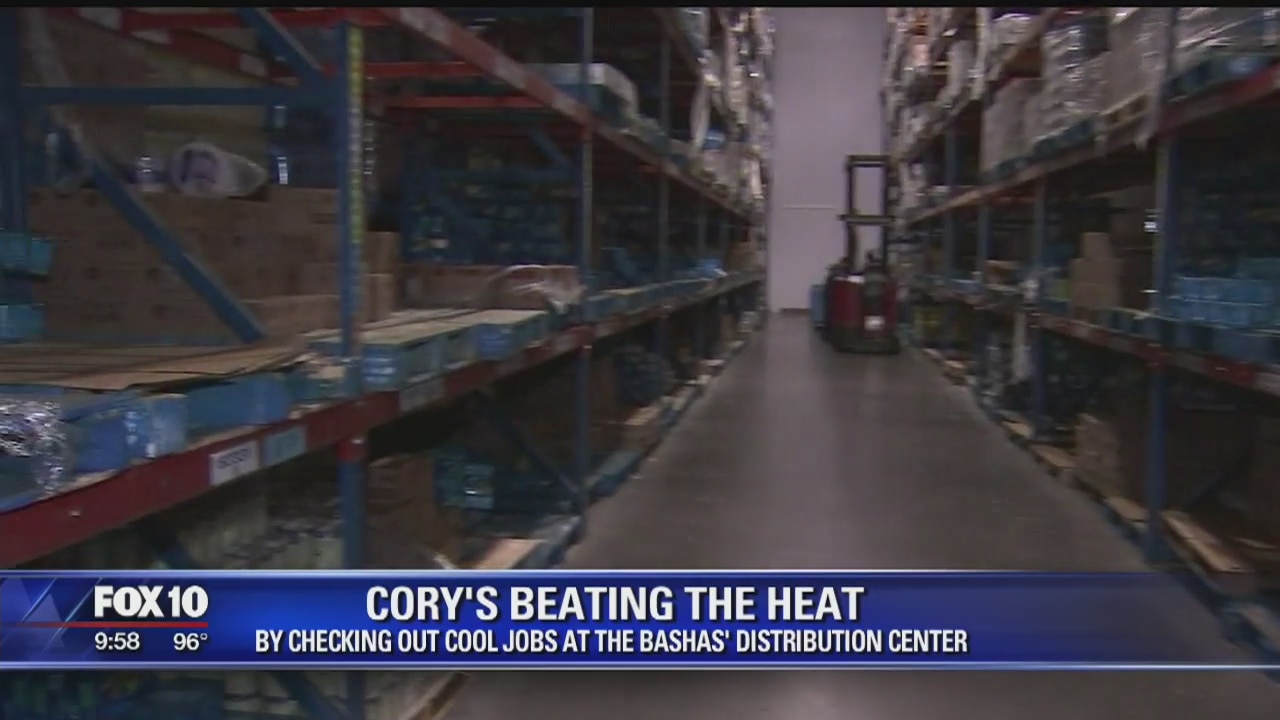 FOX 10's Cory McCloskey stayed cool at the Bashas' Distribution Center in Chandler. (7-27-16)