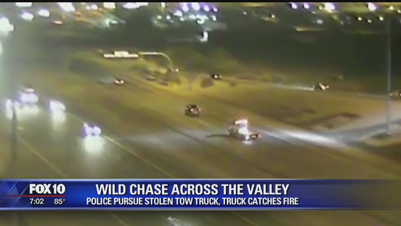 Authorities were led on a wild chase across the valley after a man stole a tow truck.