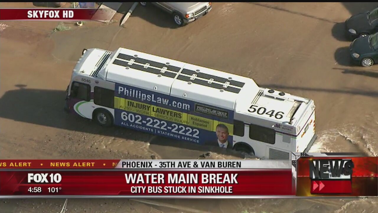 The intersection is shut down in all directions after a city bus gets stuck in a sinkhole.