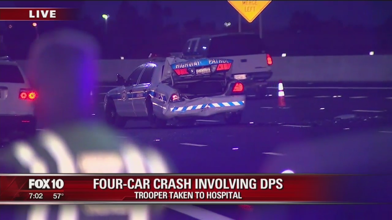 An Arizona Department of Public Safety trooper has been injured in a four-vehicle crash along a Phoenix freeway.