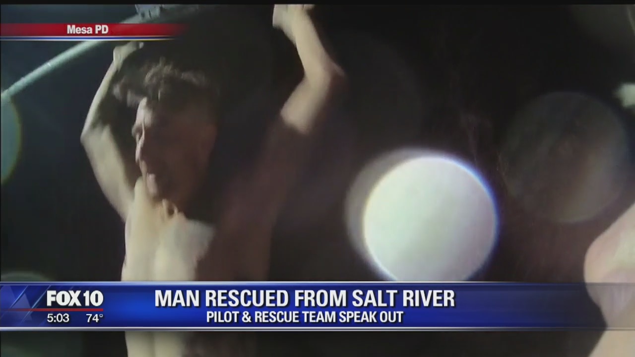 This wasn't your typical water rescue. A man was plucked from the Salt River in Mesa and he made it to dry land by grabbing onto a police helicopter skid and holding on as tight as he could. FOX 10's Linda Williams reports.