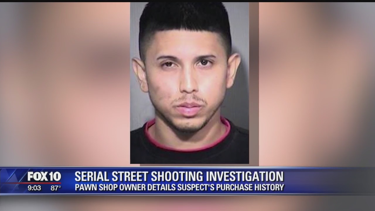 New information are coming in Thursday in the serial street shootings case. FOX 10 Phoenix is hearing from a Pawn Shop manager about the suspect's gun purchase history. FOX 10's Stefania Okolie reports.