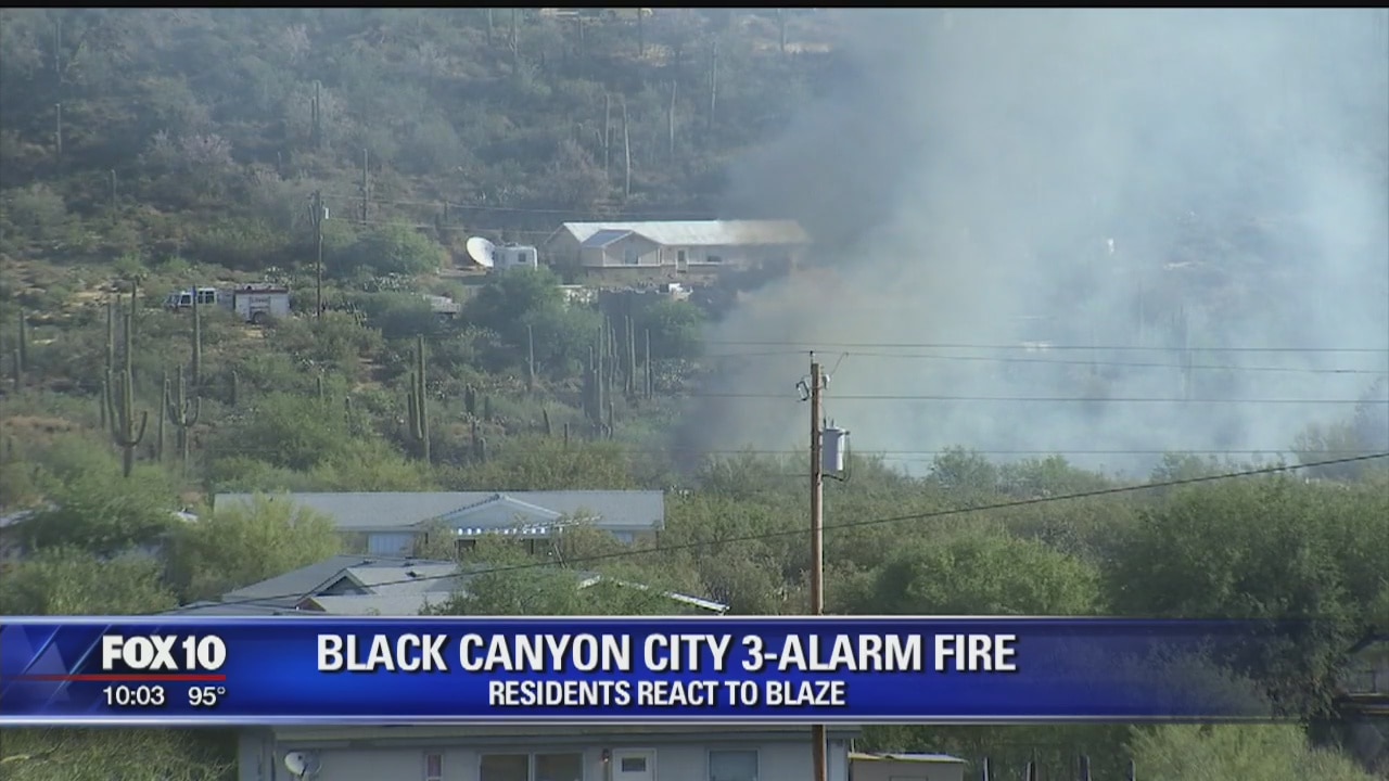 A massive three-alarm fire is burning on the northeast side of Black Canyon City on Sunday morning.