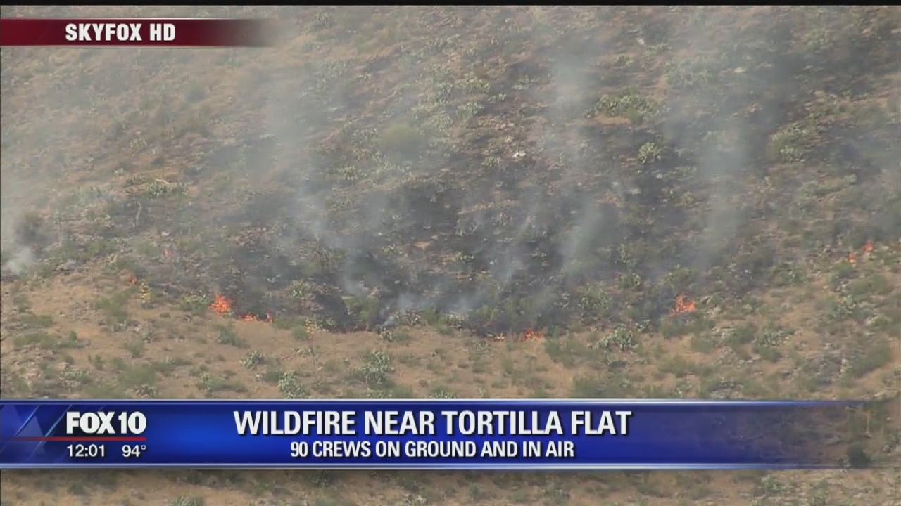 Firefighters say a brush fire has burned approximately 50 acres near Tortilla Flat, Arizona.