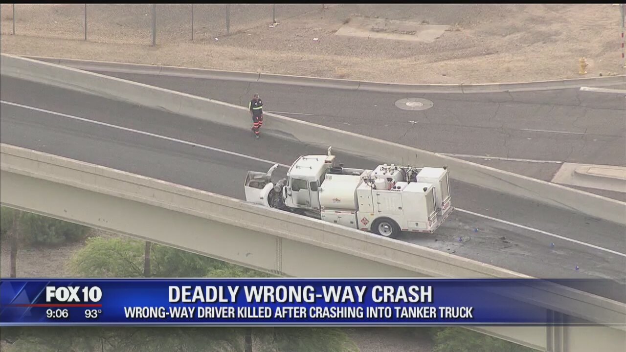 Authorities say a man is dead after a wrong-way car crashed into a commercial truck and fell off a Phoenix freeway. FOX 10's Courtney Griffin reports.