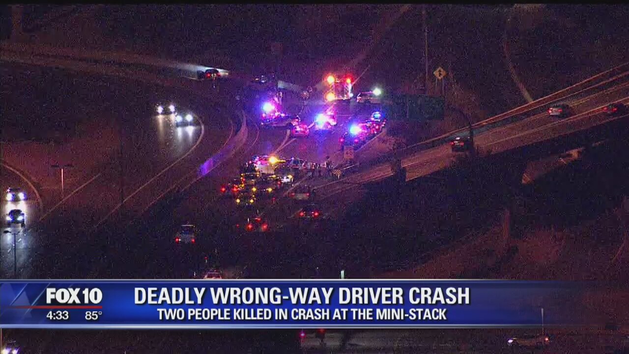 Two people were killed in a wrong-way crash along a Phoenix freeway on Tuesday night.