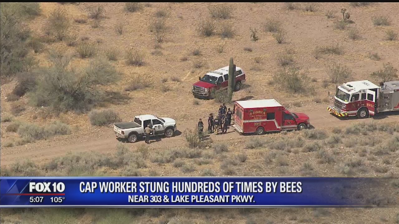 Firefighters say a man has been airlifted to a nearby hospital after being stung several hundreds of times by bees in Peoria. FOX 10's Danielle Miller reports.