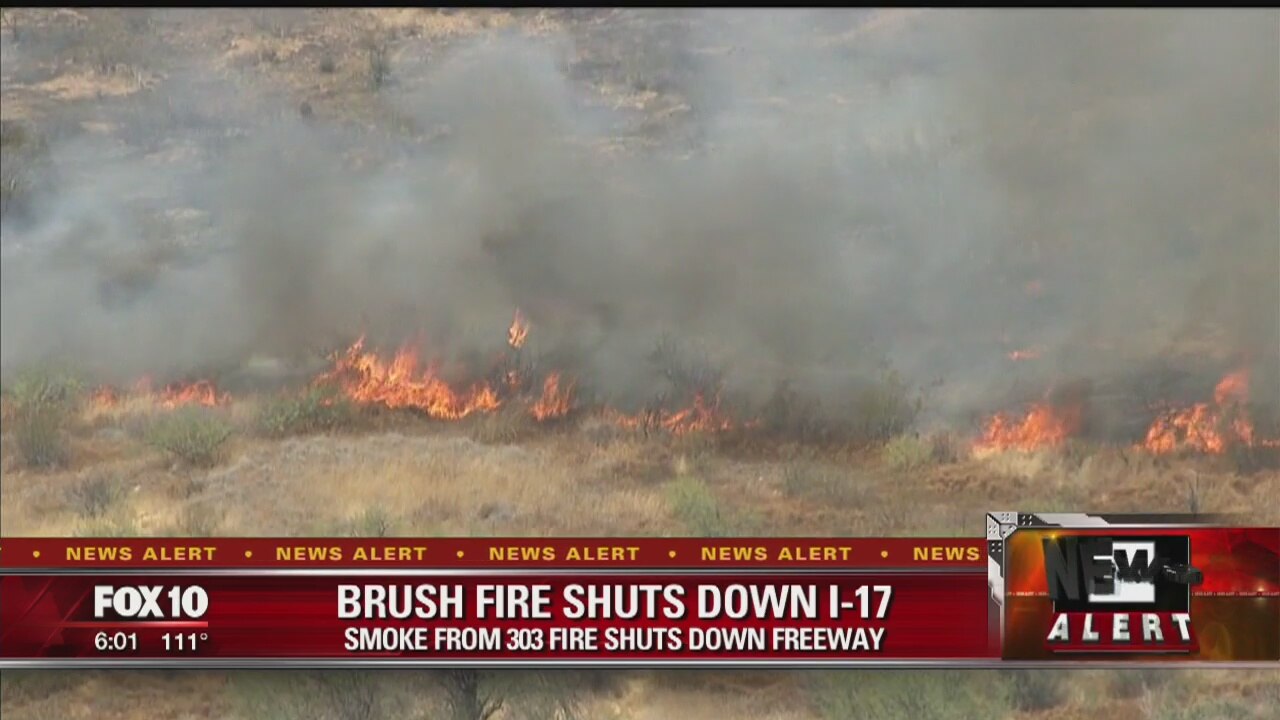 A brush fire has closed off I-17 in North Phoenix, according to officials. FOX 10's Matt Galka reports.