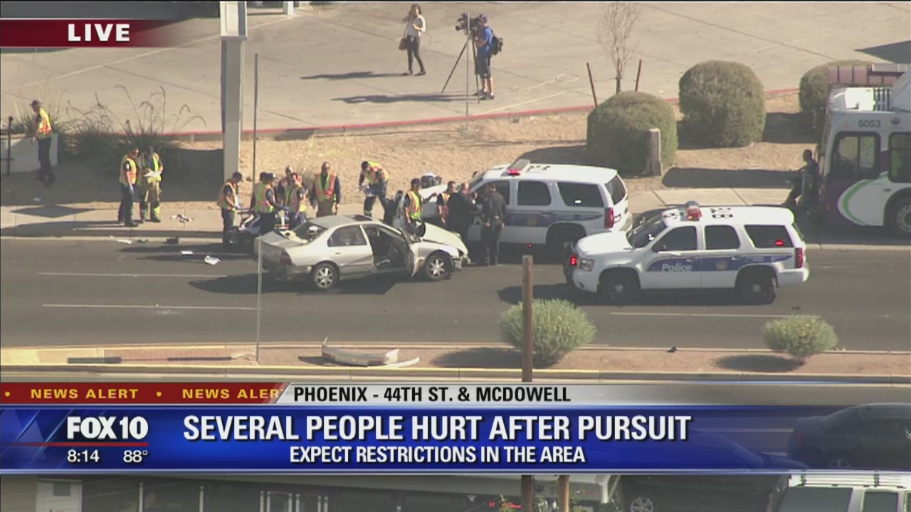 Five people have been injured after a vehicle crashed during a police pursuit in Phoenix.