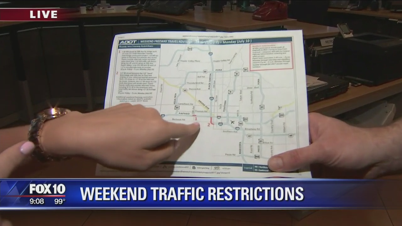 PHOENIX (AP) - A short section of Interstate 10 west of downtown Phoenix will be closed much of the weekend for a bridge project that's part of construction of the new Loop 202 South Mountain Freeway.