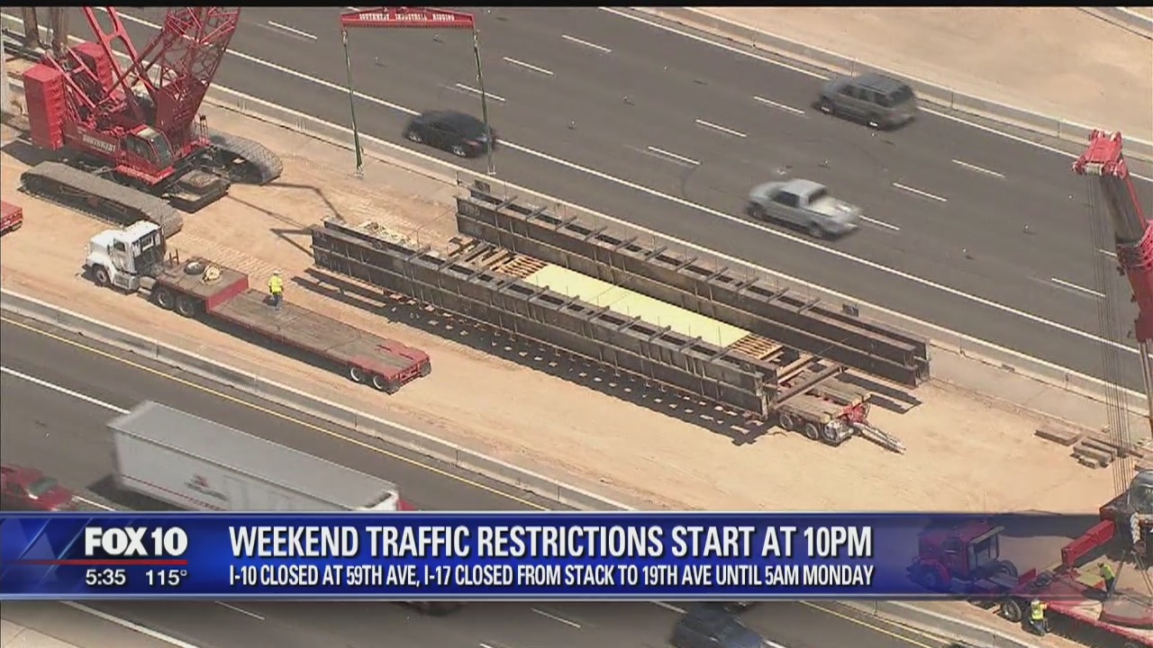 A short section of Interstate 10 west of downtown Phoenix will be closed much of the weekend for a bridge project that's part of construction of the new Loop 202 South Mountain Freeway.