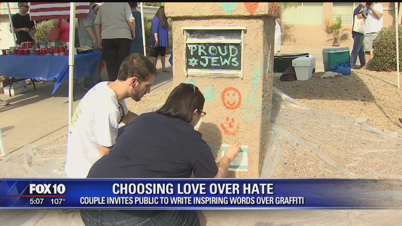 Friends and family gathered at one valley family's home to write words of love over anti-Semitic graffiti. Fox 10's Marcy Jones reports.