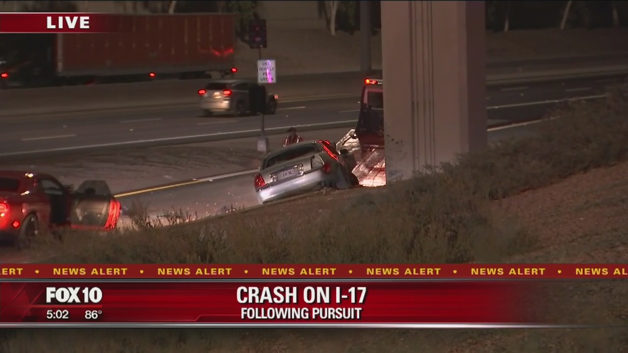 Authorities are searching for a suspect after a pursuit ended in a crash along Interstate 17.
