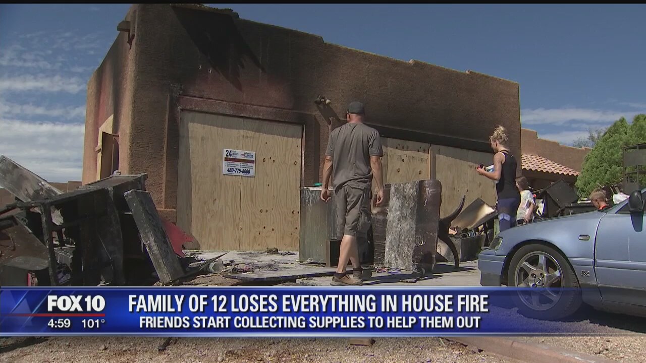 A family of 12 is out of their home, following a devastating fire on Monday that began in the garage, and quickly spread. FOX 10's Matt Galka reports.