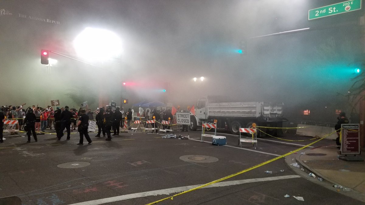 Video of tear gas being used by police, following a Donald Trump rally in Downtown Phoenix on Tuesday. Video courtesy: Dee Lopez.