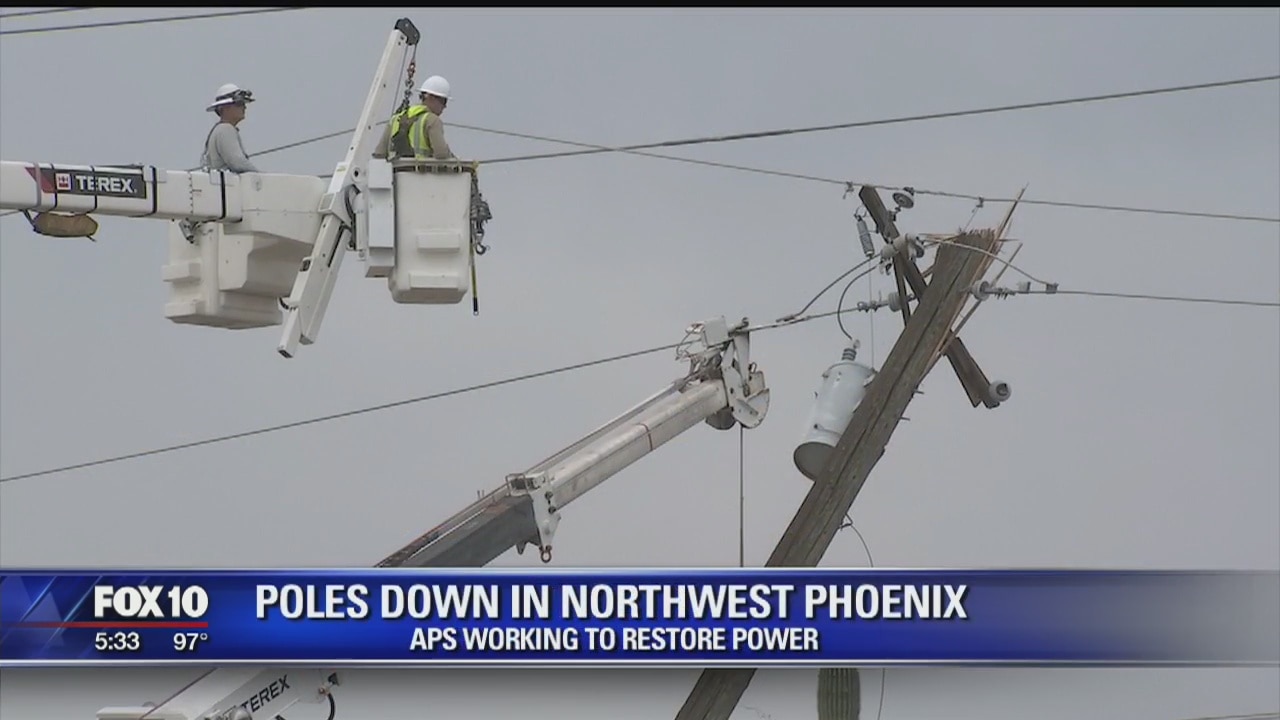 Crews rushed to repair damages to power poles in parts of the Valley, following a monsoon storm Thursday night. FOX 10's Steve Krafft reports.