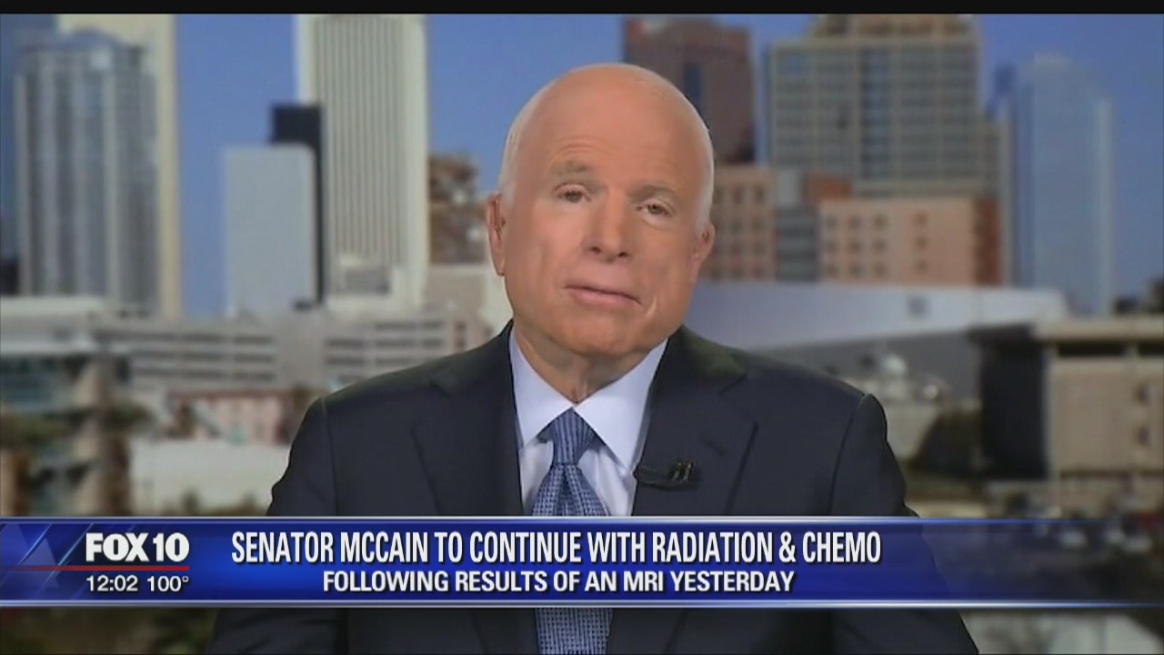 WASHINGTON (AP) - Sen. John McCain will continue with radiation and chemotherapy treatments for brain cancer, while maintaining a regular work schedule in the Senate - following his MRI on Monday.
