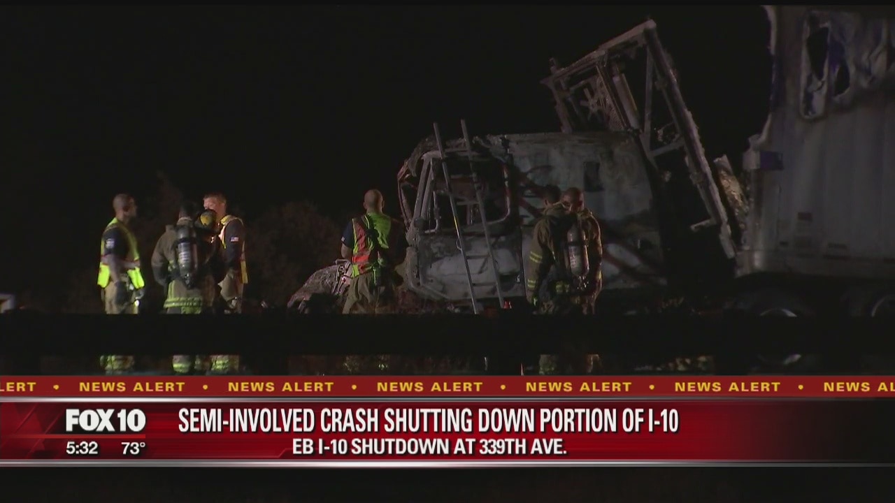 Authorities are investigating a deadly semi-truck crash that has shut down Interstate 10 in the west Valley.