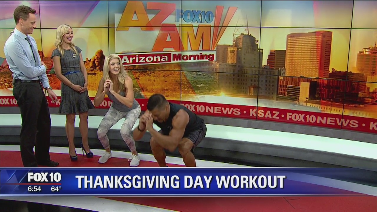 For better or for worse, Thanksgiving has become a day to overeat with loved ones. And the average person is expected to consume at least 4,500 calories that day. On Fox 10 AZAM, Lauren Roach with TriFit showed Anita Roman and Ty Brennan how to get the best workout before and after your thanksgiving feast.
