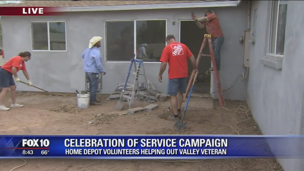FOX 10's Cory McCloskey speaks with volunteers from Home Depot who are remodeling the home of U.S. Marine Corporal Graham Dorsey and his family in Phoenix.