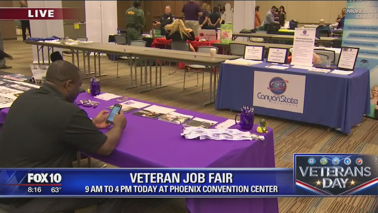 Joshua Strausburg?volunteered during the veteran's?job fair at the convention center Friday morning, and he answered questions about Arizona at Work, which is a program run by the Department of Economic Security.