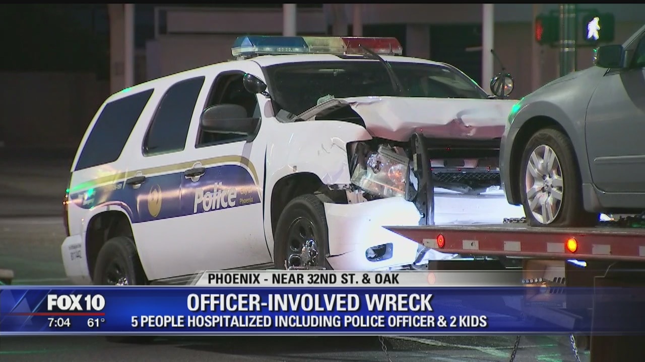 Police say five people were injured in an officer-involved crash in Phoenix.