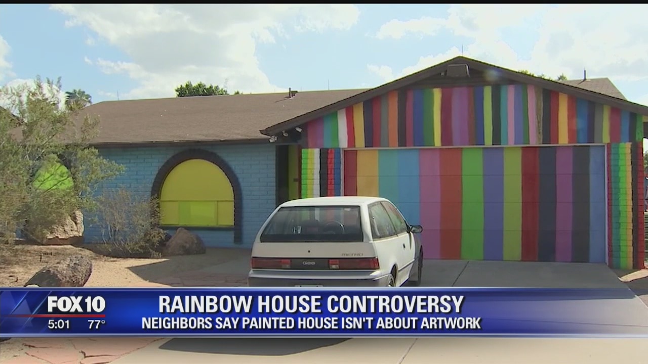 Earlier in November, FOX 10 Phoenix profiled a colorful home in Peoria, where Ernest Leas�used 100 different colors to paint his home. Now, tensions are escalating in the neighborhood over the home. FOX 10's Steve Krafft reports.
