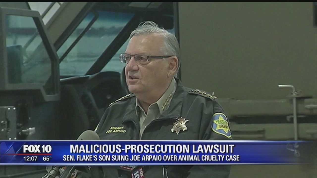 PHOENIX (AP) - Former Sheriff Joe Arpaio is expected to testify Wednesday at a malicious-prosecution trial that centers on a now-dismissed animal cruelty case he brought against one of Sen. Jeff Flake's sons.