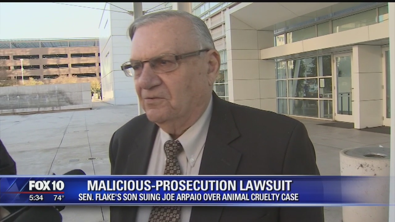 Former Maricopa County Sheriff Joe Arpaio testified at a malicious-prosecution trial that he did not pressure investigators or prosecutors to bring an animal cruelty case against Sen. Jeff Flake's son in the heat-exhaustion deaths of 21 dogs at a kennel. FOX 10's Steve Krafft reports.