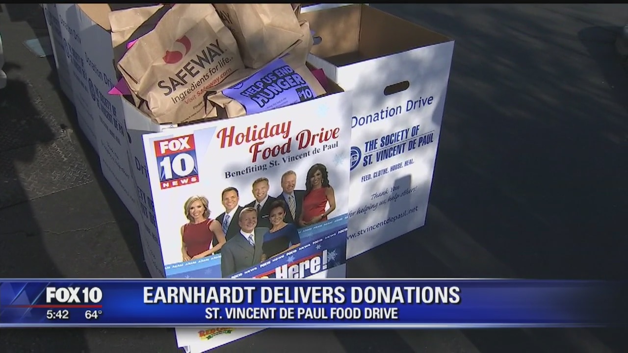 FOX 10 holiday food drive for St. Vincent de Paul: Earnhardt delivers donations