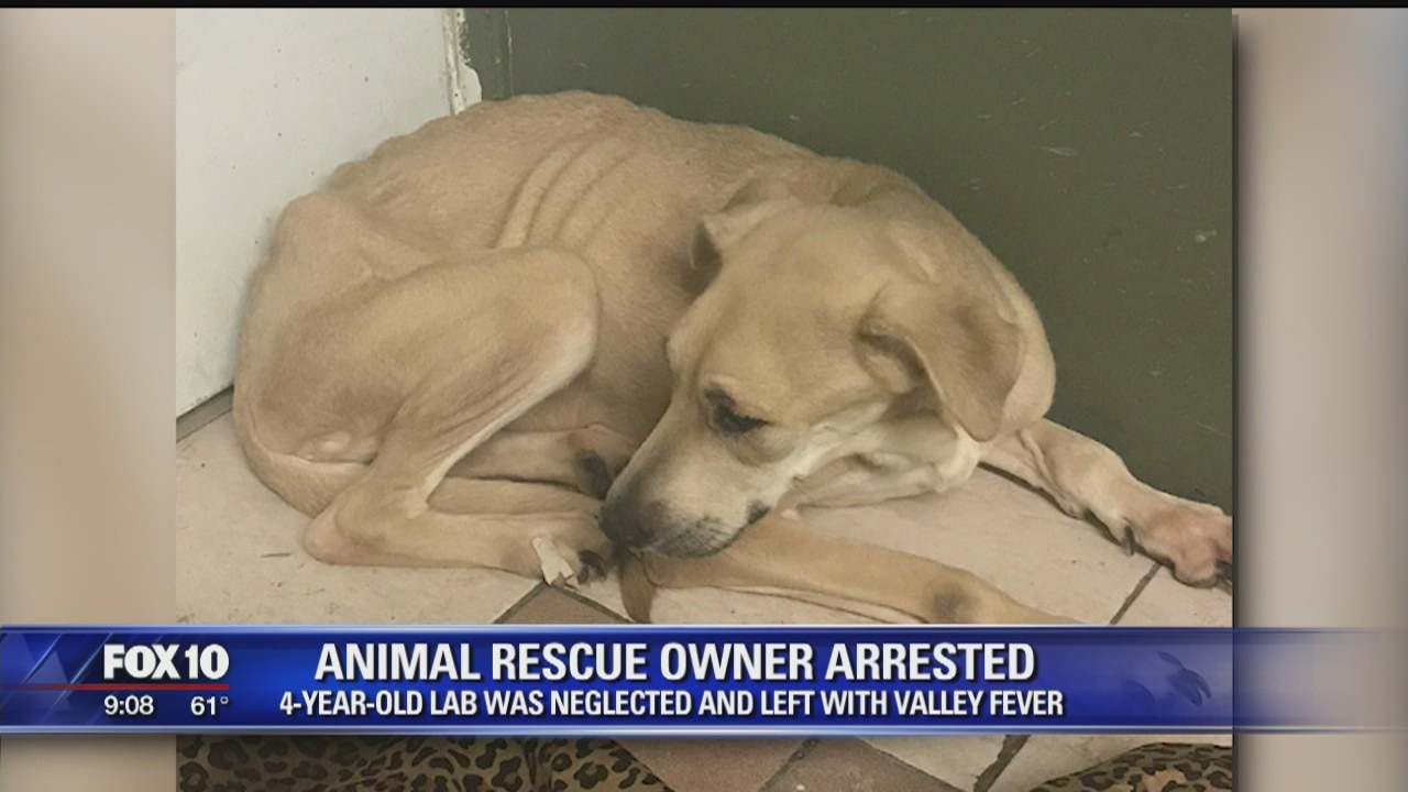 The owner of a local animal rescue has been arrested Thursday after a four-year-old Labrador was allegedly neglected.?FOX 10's Stephanie Olmo reports.