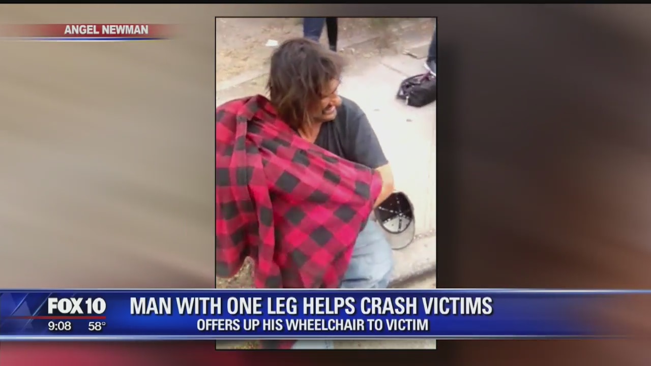 A man in a wheelchair who lost one of his legs is called a hero for helping some car crash victims. FOX 10's Courtney Griffin reports.