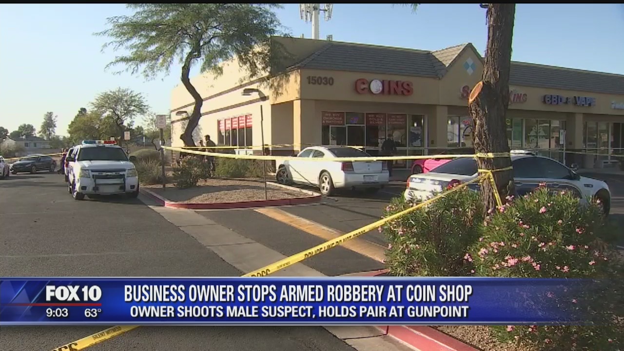 Police are investigating an armed robbery at a business near Tatum and Greenway where the owner shot the suspect and held the suspect at gunpoint until officers arrived at the scene.