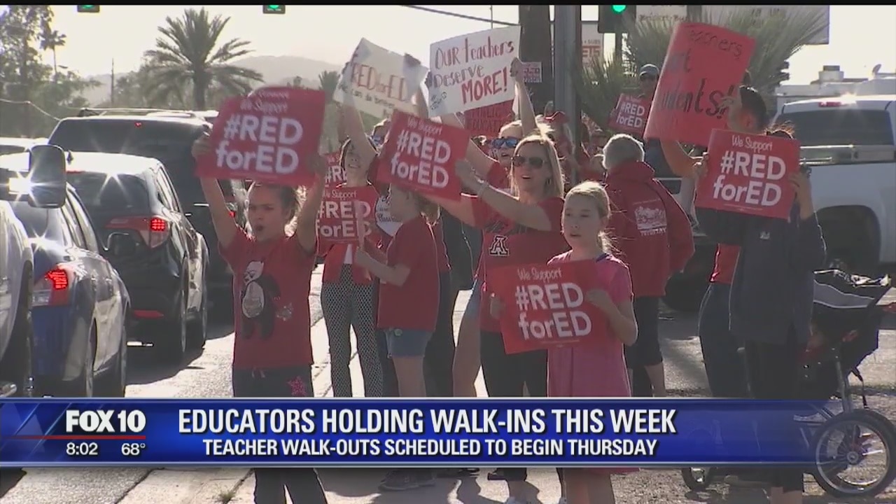 With just days away from a statewide teacher walk-out, today, more schools held walk-ins as teachers and support staff continue to push for better pay and funding. "We're going to be collecting food all three days of the walk-in," Susan Seep said. "We're going to get it delivered throughout the day, Wednesday. We'll pack boxes for families to take home."