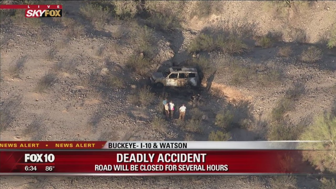 BUCKEYE, Ariz. (KSAZ) - Authorities say one person is dead following a fiery crash near Interstate 10 in Buckeye. According to the Maricopa County Sheriff's Office, the crash happened on Watson Road, north of I-10 in Buckeye on Wednesday morning.