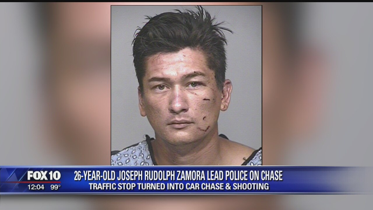 PHOENIX (KSAZ) - Police say a man is in custody following an officer-involved shooting and pursuit in the Valley. According to Scottsdale police, an officer pulled over 26-year-old Joseph Zamora near 74th Street and Cactus just after 11:30 p.m. on Sunday night.