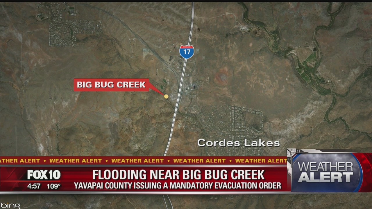 A mandatory evacuation has been issued for residences in the low-lying areas of Big Bug Creek. NWS has issued a Flash Flood Warning.